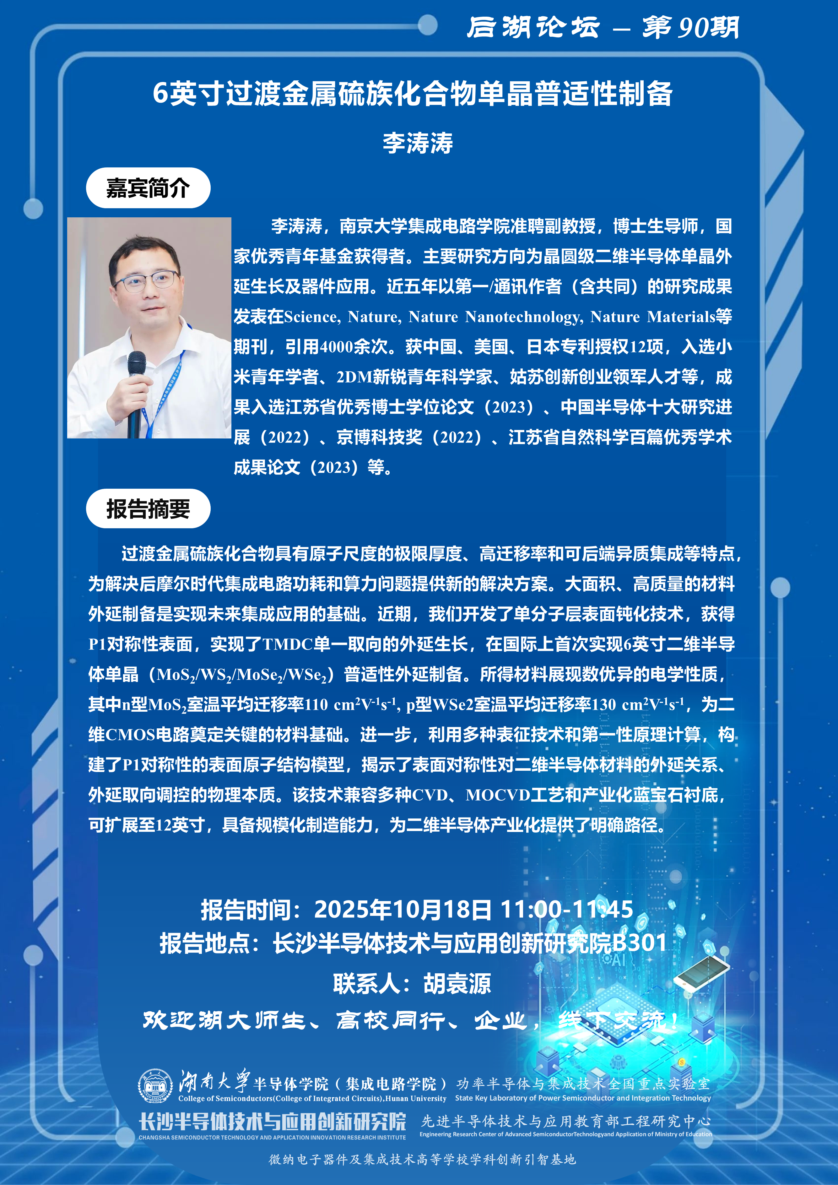 后湖论坛第90期:6英寸过度金属硫族化合物单晶普适性制备