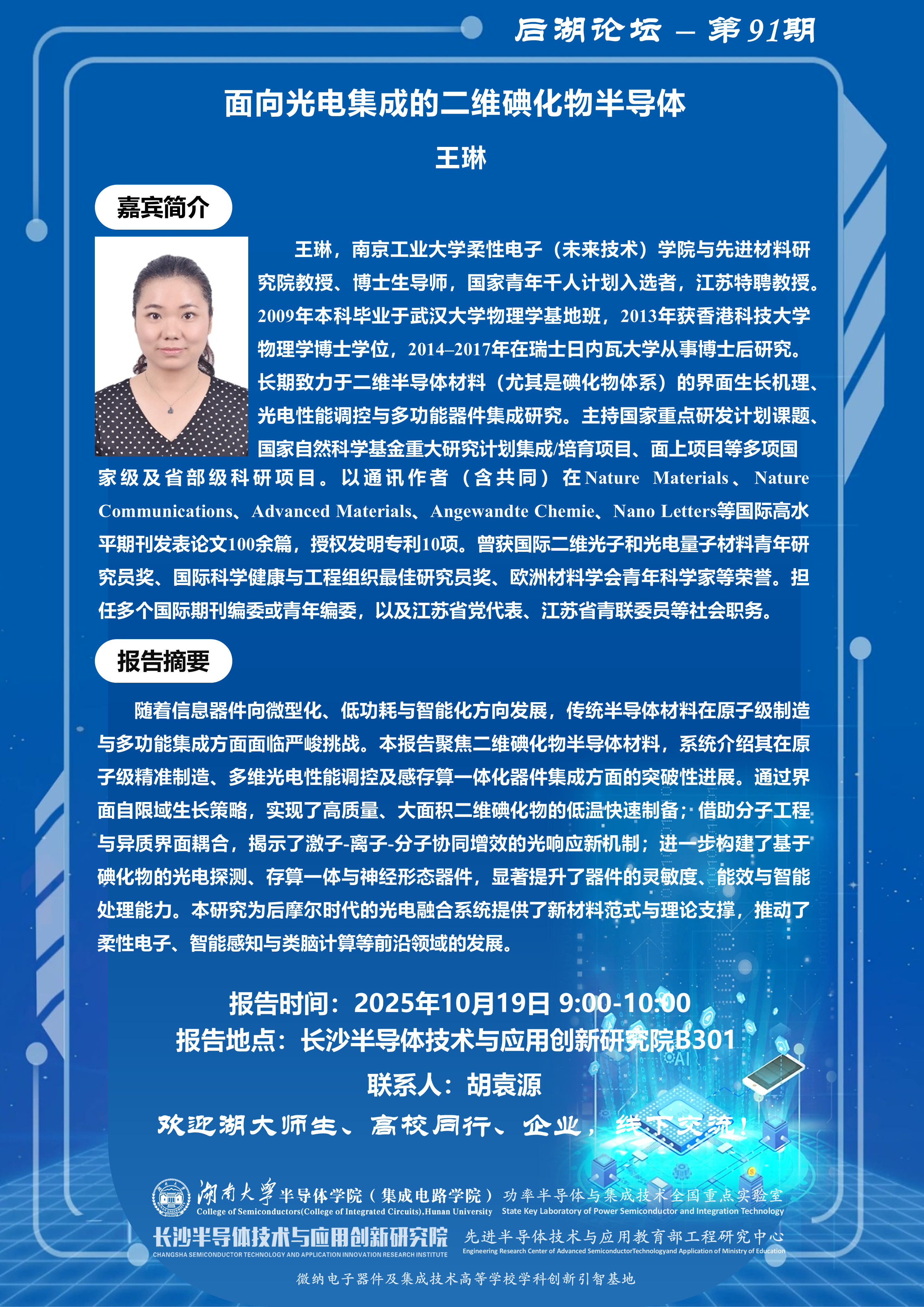 后湖论坛第91期:面向光电集成的二维碘化物半导体